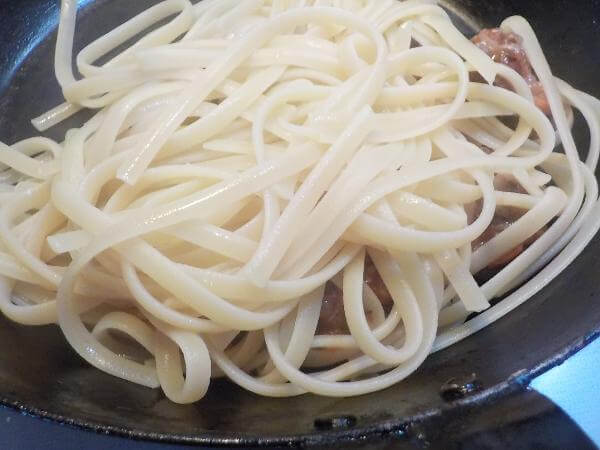 また、パスタソースに茹であげたアルブロンゾをくわえ煮つめると表面に味がしみこみやすです。