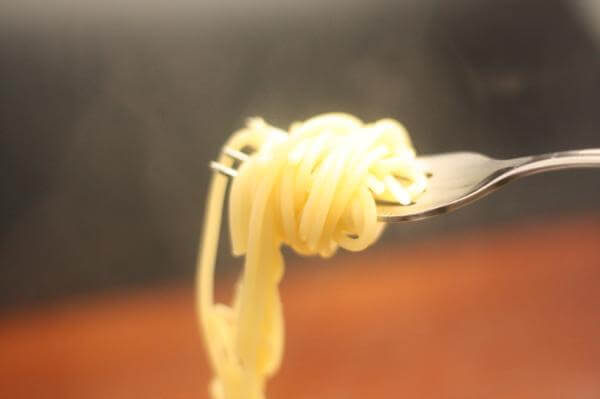 密度が濃いのか、おなじぐらいの太さのスパゲッティとくらべると、ゆでる時間は長め。