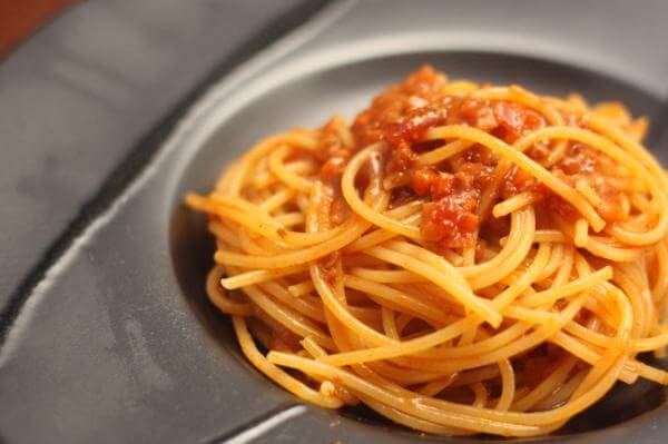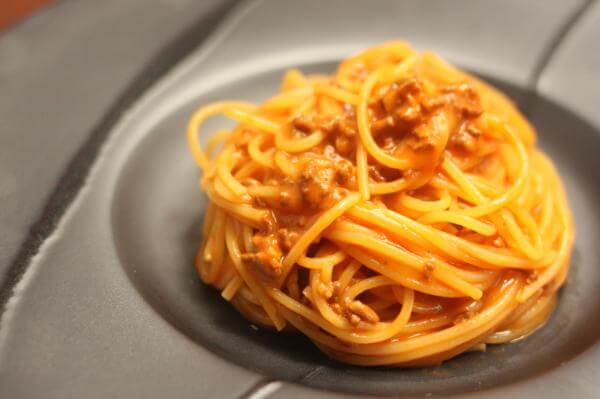 パスタソースは、トマトの水分を徹底的に排除しきったあとのように、トロリとした質感です。