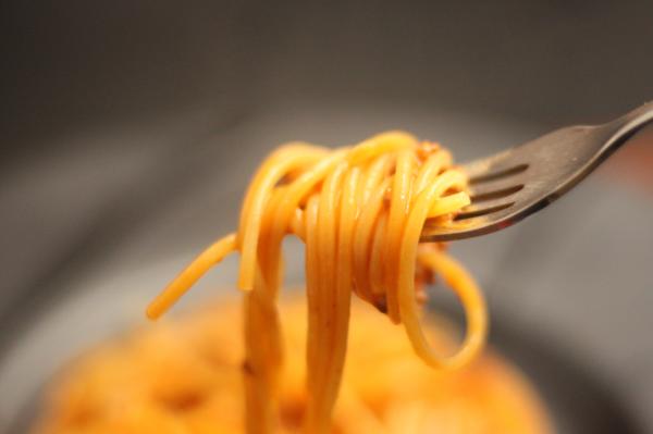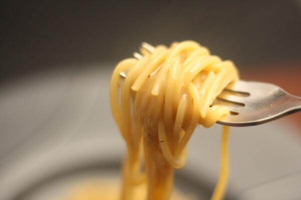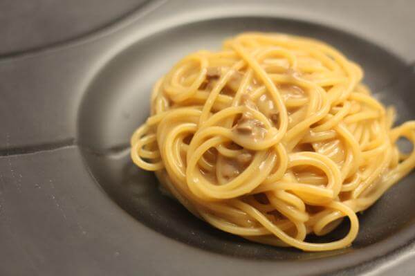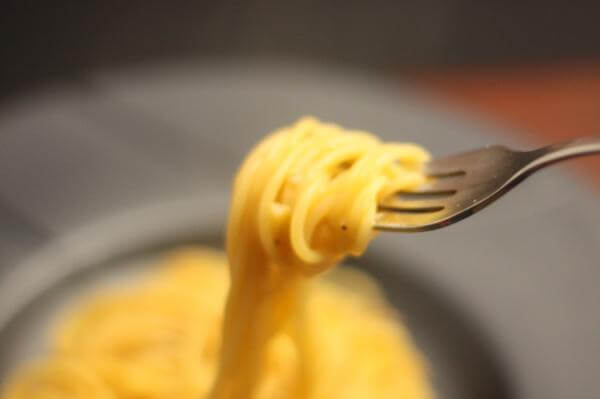 電子レンジで調理したのにもかかわらず、パスタからすべり落ちるほどにトロトロなパスタソースです。