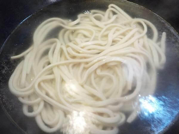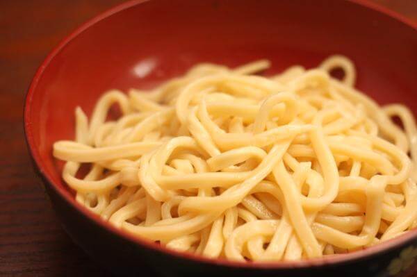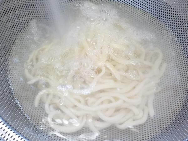 お好みのゆで加減になれば、麺をザルなどにとり、冷水でヌメりをとり、表面をしめる。あとは、ふつうのうどんのように食べるだけ。