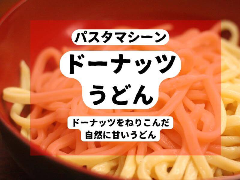 ドーナッツを粉にねりこんで作るうどんのレシピを書いています。