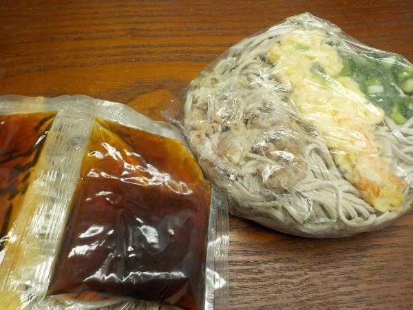 作り方は、冷凍庫からとりだしお湯をわかし、透明な袋からとりだした具と蕎麦、おつゆをいれて煮れば作れます。