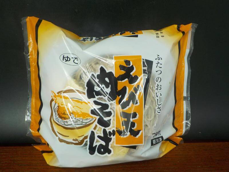 えび天と牛肉がのせられた冷凍そばは、生協で注文しました。