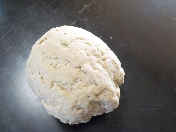 形をととのえ混ぜ作業終了。パスタマシーンで製麺するので、ヘソダシをする必要はない。