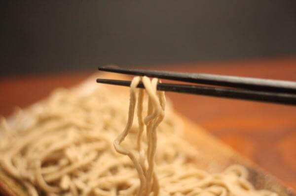 粉の種類や蕎麦の太さ、お湯の温度の違いでゆで時間は変わる。おおよそ1~5分ほどで蕎麦はゆであがる。蕎麦をお湯からひきあげる前に、ゆで加減をチェックしよう。