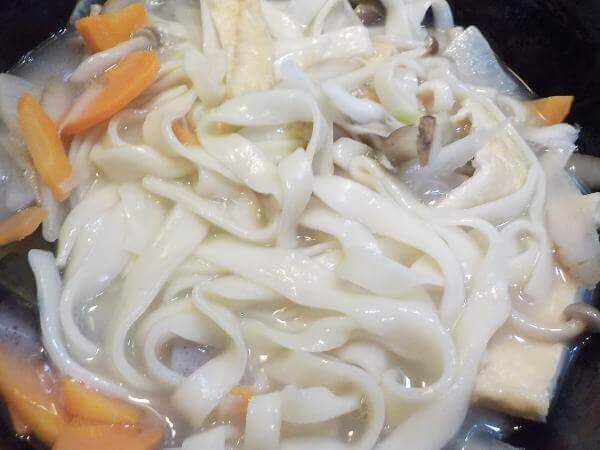 けれども、しっかりとほうとうらしく、鍋のおつゆに絶妙のトロみをつけてくれます。