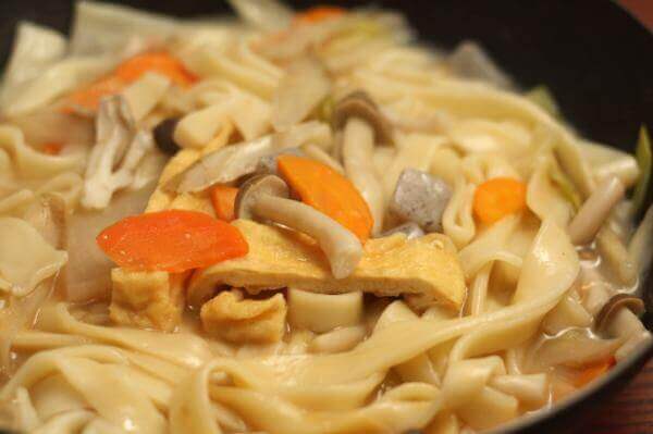 ほうとうなのか、うどんなのか、どちらかといわれると、しっかりとした噛みごたえがあり、お湯のなかで溶けきらないしっかりとした食感のうどんにちかいです。