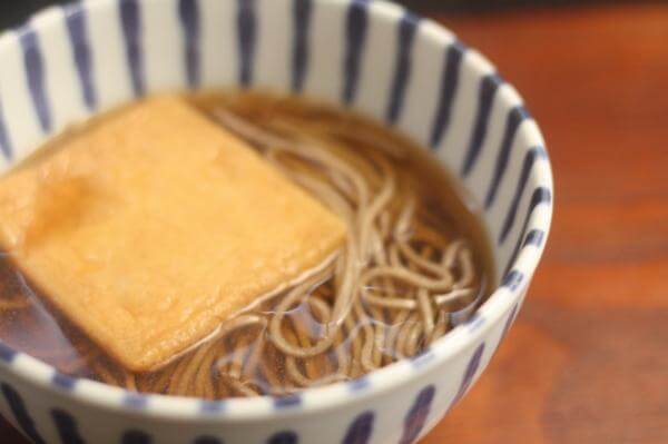 おあげとそばを一緒の鍋で煮るとおあげの油がなくなります。