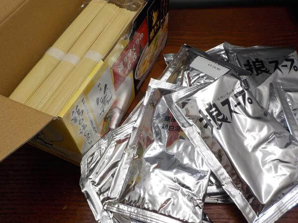 それも一店につき4食分のスープと、八食分のマルタイの麺がついてきます。