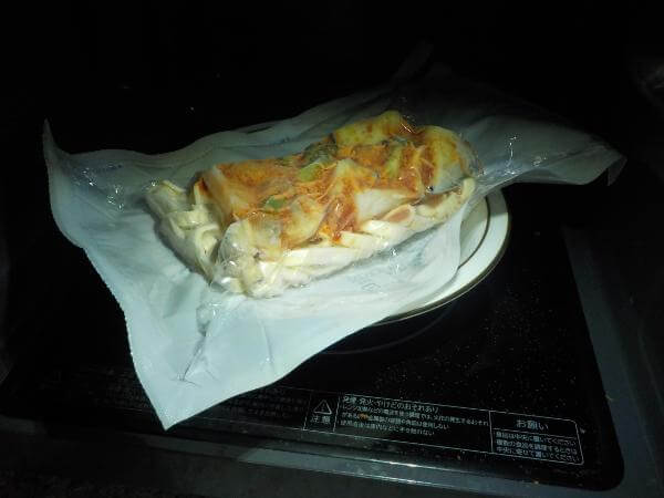 冷凍庫からとりだし、袋に切れ目をいれて、電子レンジにいれボタンを押すだけ。