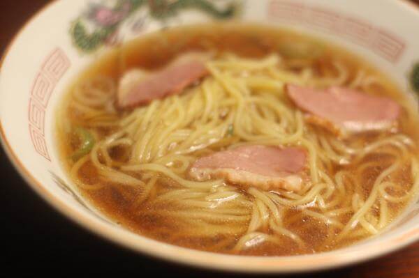 鴨肉の至純に軽い脂が浮いているスープ。くどくなく、あっさりとした醤油スープといいたくなる口あたり。