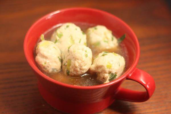 残ったスープで鶏肉をゆでると、燻製の香りがただよい、鴨肉の脂を吸収した旨味たっぷりの肉団子を作れます。