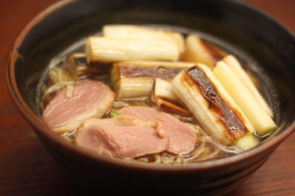 すこし柔らかめ、そして鴨の脂がよくからみつく麺です。