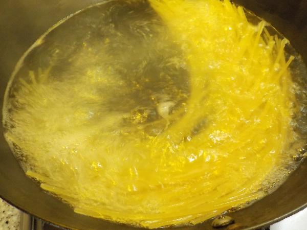 そんなに長いあいだスパゲッティをゆでてられない、そんなせっかちさんには水もどしがオススメです。