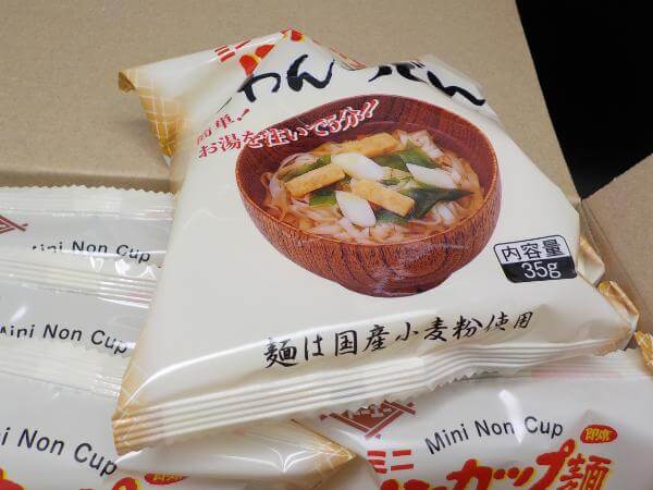 袋にいれられたインスタントうどんです。