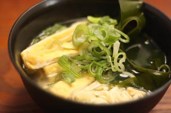 ワカメと油あげ、ネギがはいっています。