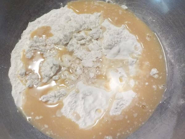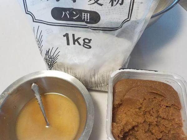 味噌はあらかじめ水で溶いておくと粉と混ぜあわせやすいです。