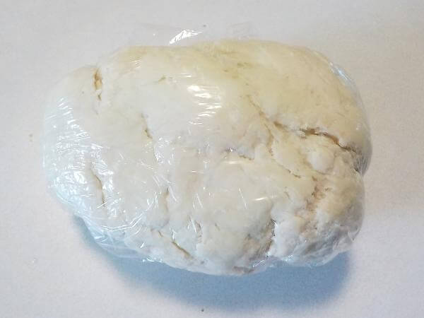 ひと塊にまとってきたら、形をまるく整え生地を寝かす。寝かしているあいだに、生地の表面が乾燥しないようにラップをまいておく。