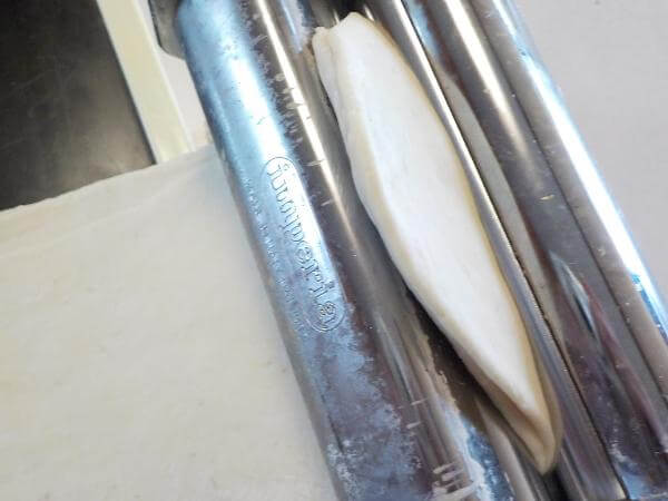 生地をのばす→折りたたむ→のばす。この作業を3~5回ほど繰り返していると、生地の表面が滑らかになってくる。
