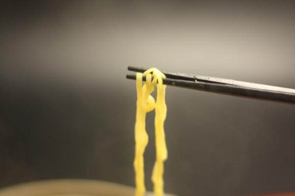 ちからをいれることなく、ひょいッと口をすぼめると、つるつるみちると麺をすすりあげることができます。