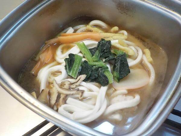 作り方は、お湯をわかし冷凍庫からとりだした味噌とうどんをゆでるだけ。