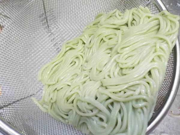 抹茶をいれた蕎麦、というよりも、抹茶をいれた中華麺といった噛みごたえです。