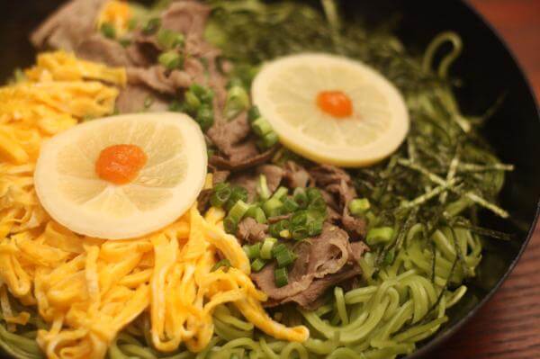 牛肉はすこしお高いです。けれども、卵や海苔、ネギ、レモン、お手頃価格の食材との相性がよいそばとつゆです。