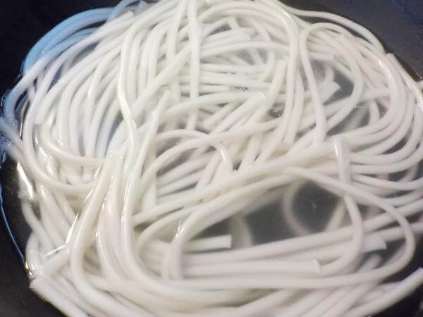 お湯でゆがくことで、まるで半生、打ち立てのうどんのような質感にもなります。