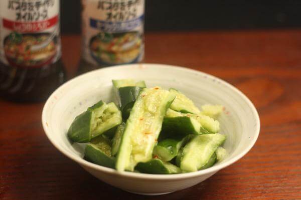 きゅうりを砕いたものに、オイルパスタソースを混ぜあわせたもの。