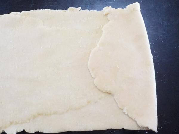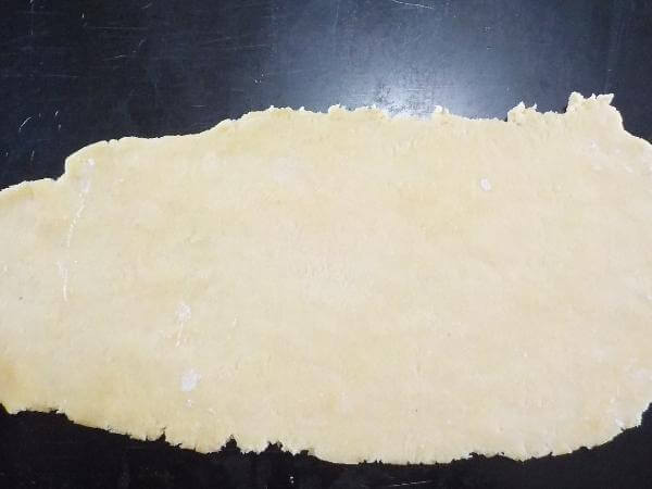 そして、あとは生地を切る。包丁で切り、フォークでとじる方法もある。