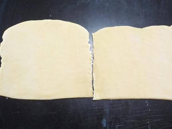 生地をうすくのばすときは、分割してのばしたほうが作業しやすい。