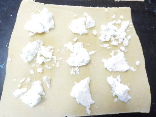 ラビオリの生地のうえに、お好みの具材をのせる。