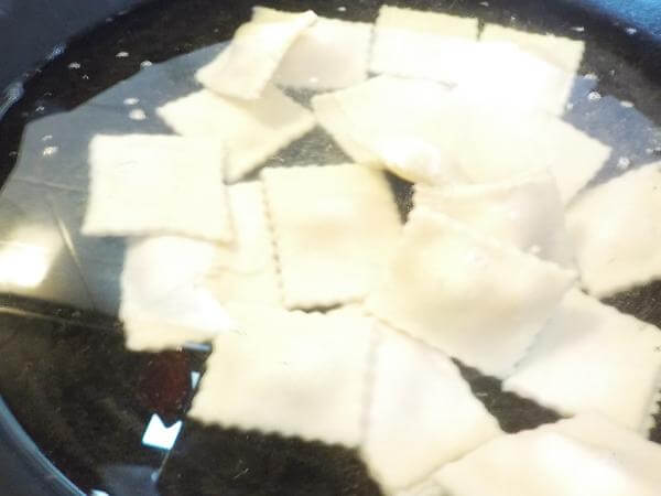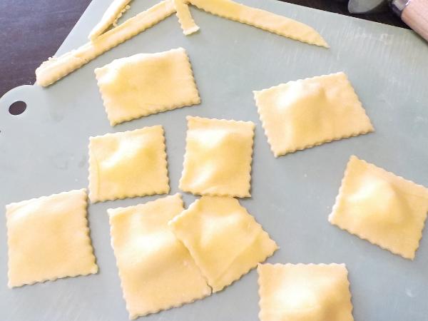 ラビオリに食材をいれたあとはすぐに茹でたほうがよい。