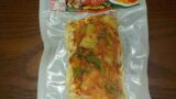 そして、冷凍庫からとりだし透明な袋をとりさったうどんと具を、おつゆとお湯が沸騰している鍋にいれます。