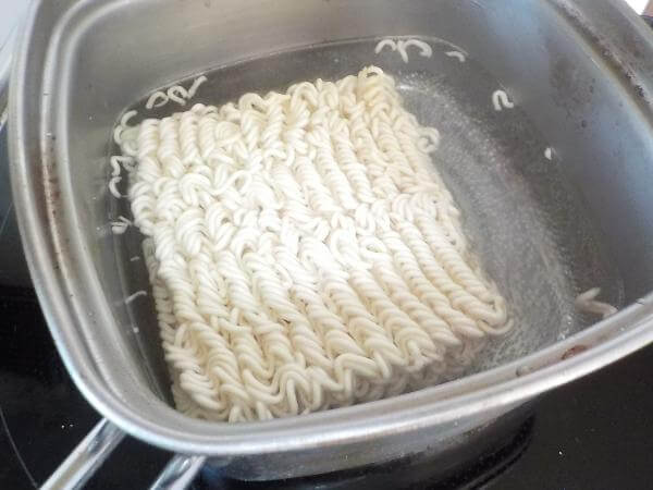 規定量のお湯をわかし、麺をいれ3分間ゆでます。