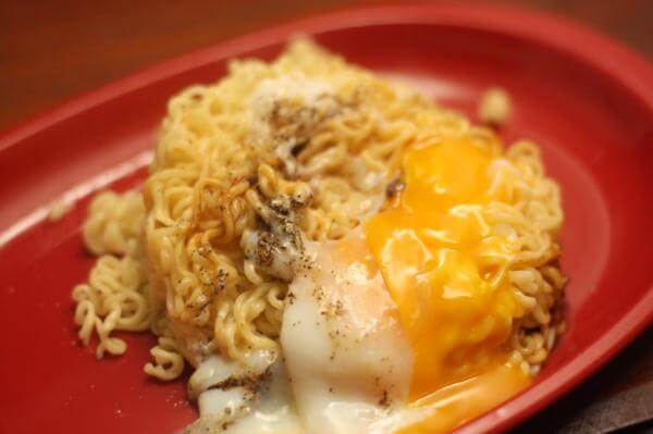 卵とチーズ、黒胡椒をふれば、バターの風味の衝撃がつよい一皿を作れます。