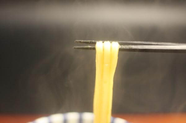 うどんの表面をお箸でもった印象は、しっかりとしています。うどんの角がすこしだけ潤んでいるように感じました。