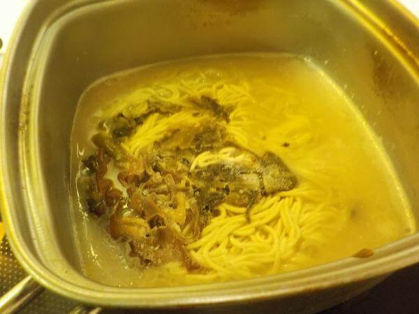 作り方は鍋にお湯をいれて、冷凍庫からとりだした麺とスープ、具を茹であげればトンコツラーメンを作れます。