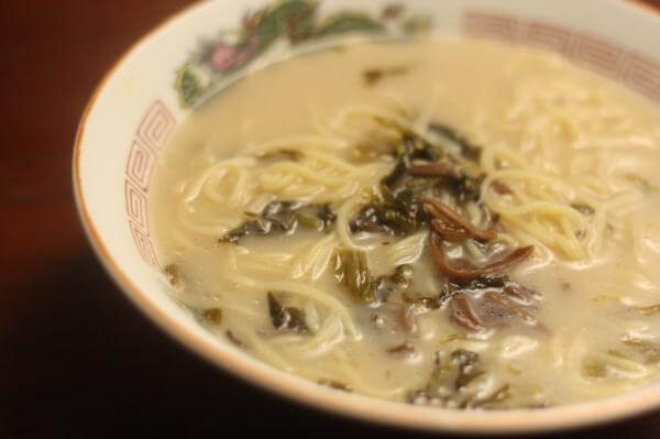 折りかさなった葉が堆積し、静かに熟した香りは、しっかりと白いスープのなかにまでいきわたっており、高菜のこなれた酸味のおかげで、口あたりは、とっても爽やか。