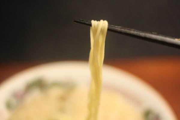 ちいさいチャーミングな泡が浮いています。スープを飲んだ印象としては、豚骨を煮つめたおした充実した旨味はあります。