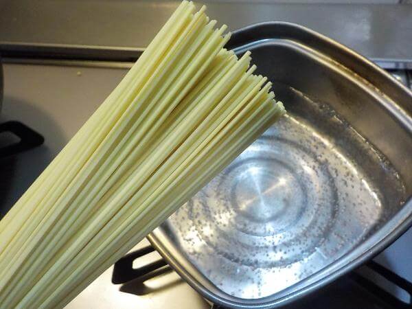 いい香りをひきだしたら、どんぶり一杯分のお湯をフライパンにくわえます。