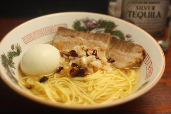 いつものラーメンスープに、テキーラをくわえるだけで、陽気な酸味が味わいをひきしめ、アルコールのコクを添加できんです。