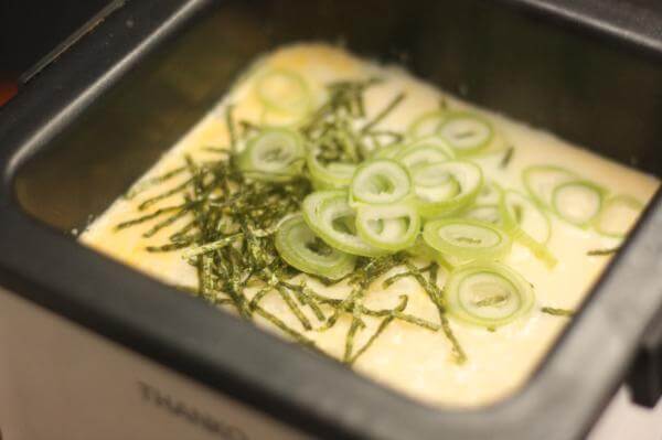 そんなときは、黒い鍋を白い土台にもどしスイッチをいれスープを温めて白ご飯をいれて煮るとおじやになります。