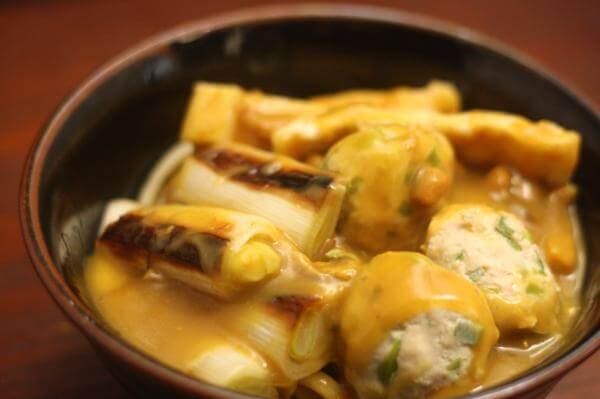 鶏肉は小さく切られており、うどんとからみやすいです。もうすこし大きい食感がほしいひとは、自分で食材をいれましょう。