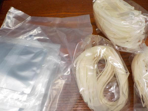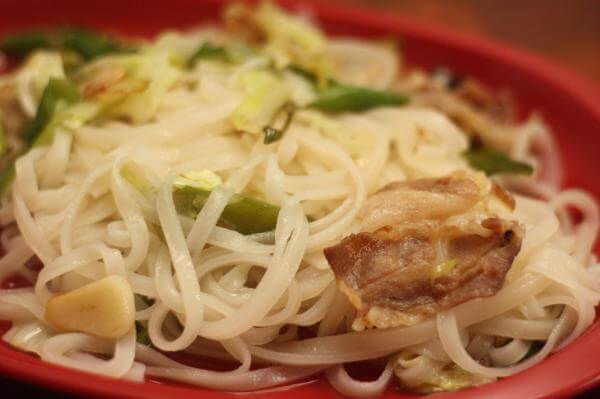 米粉でつくられた麺は、小麦粉の麺とくらべると弾力とコシの素であるグルテンがすくないです。