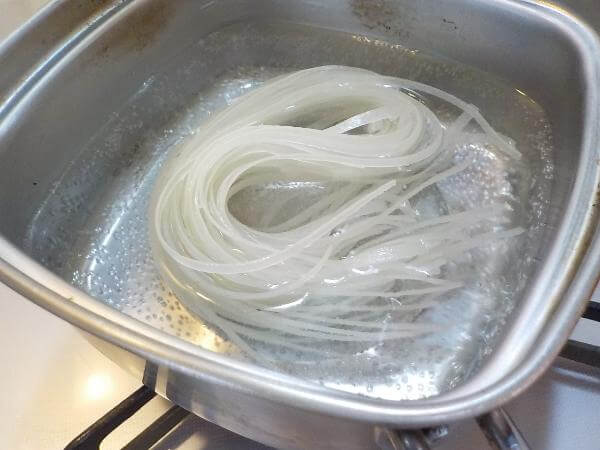 フォーは、のびにくいです。くっついていても、水であらえばすぐに食べることができます。