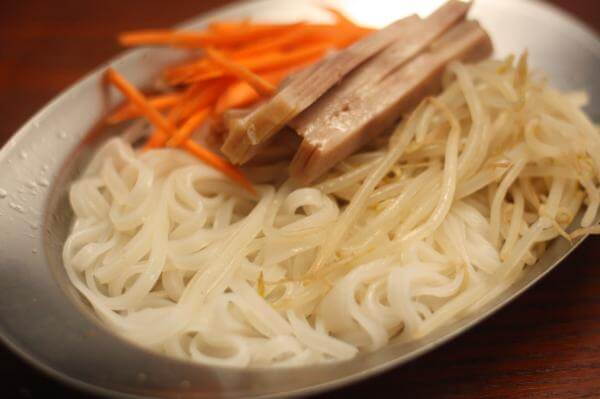 ゆでたフォーをスープのはいった器にいれ、お好みの食材をトッピングすれば出来上がりです。