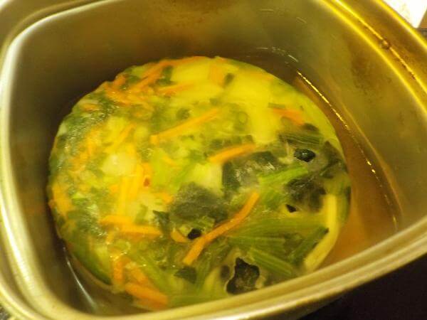 そのおつゆのなかには、まるで乾燥させて栄養素を凝縮した野菜たちから沁みでた栄養分と滋味、禅味がしみだしており、まるでおじやを作るころのように豊かな鍋の味わいです。