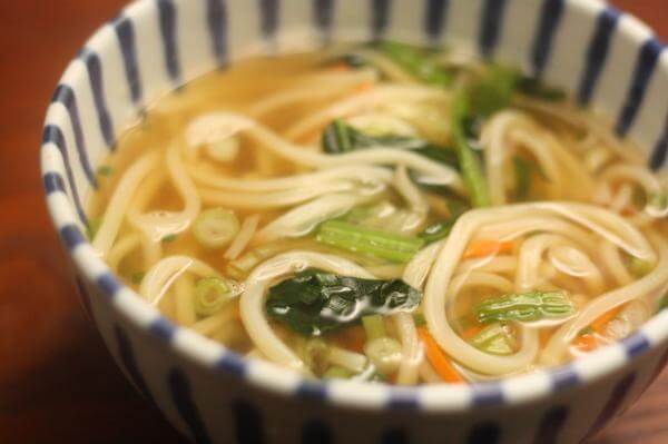 野菜室にのこった野菜をおいしく食べられるうどんともいえます。